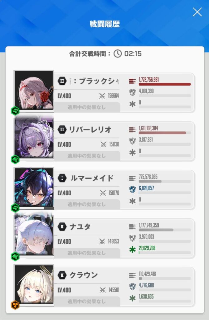 ちなみに、戦闘終了後の履歴はこんな感じ。