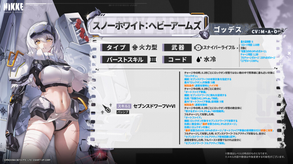 水冷属性のバーストⅢで、使用武器はスナイパーライフルです。