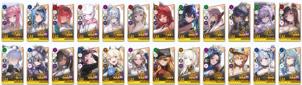 TERMINUS TICKET(2025冬イベ)時点での全キャラ数が177人なので、ありがたいことに、大半のキャラは所持できている状態です。