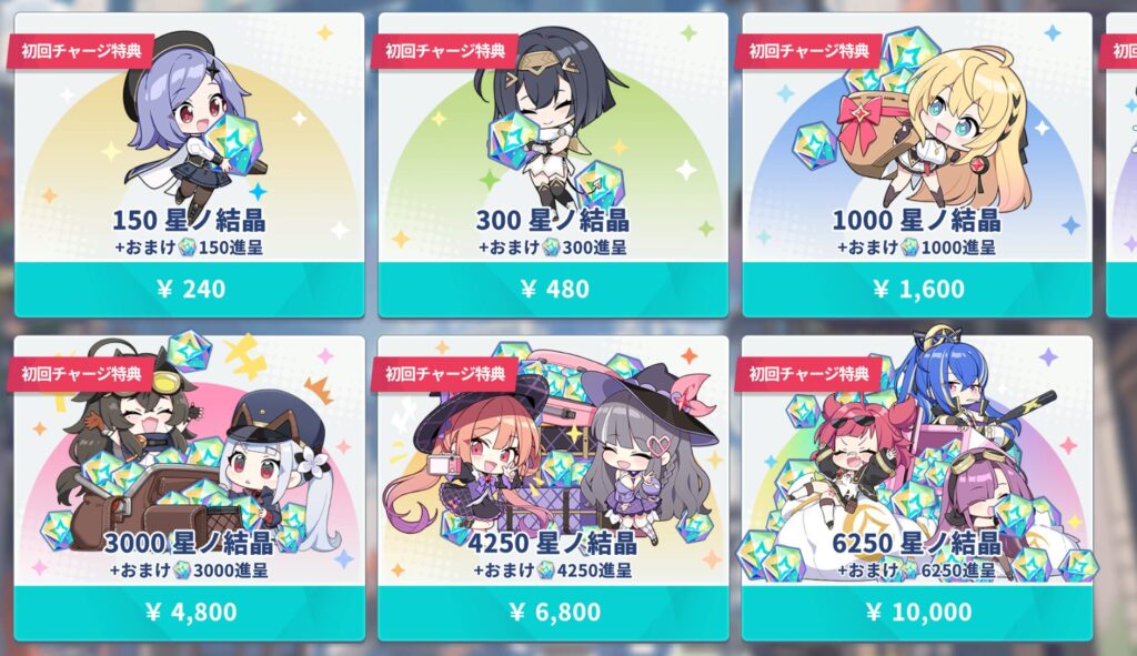 初回ボーナスを使い切った後、最も単価が安いのは10,000円の星ノ結晶。