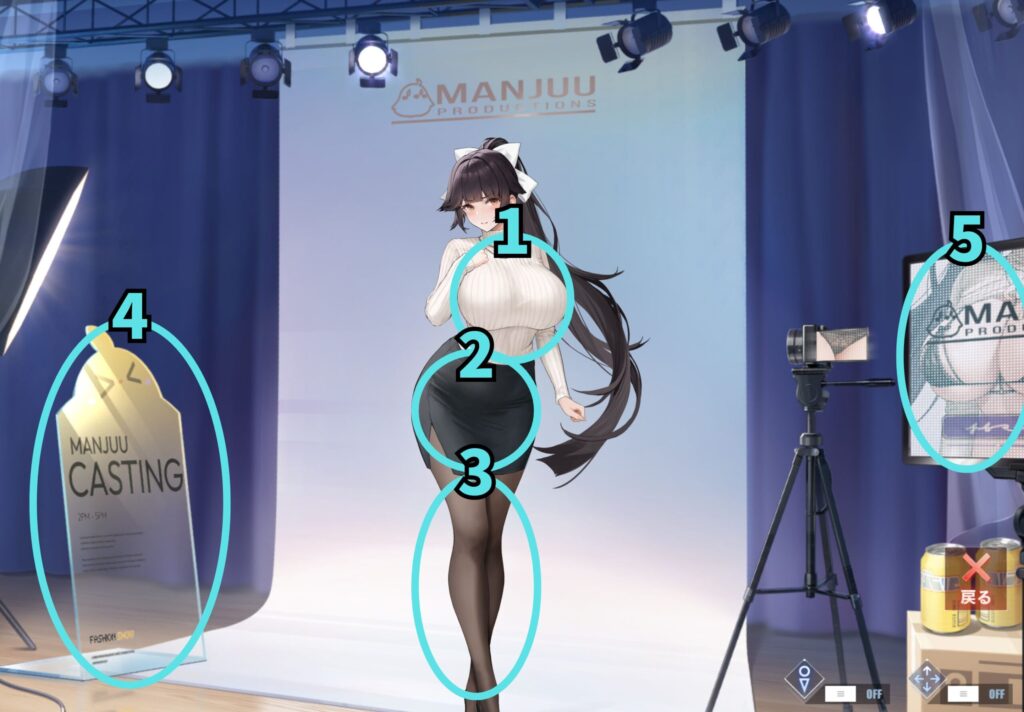 ※ギミック3・4の発動条件として、ハイヒールとストッキングを非表示にすることが必要です